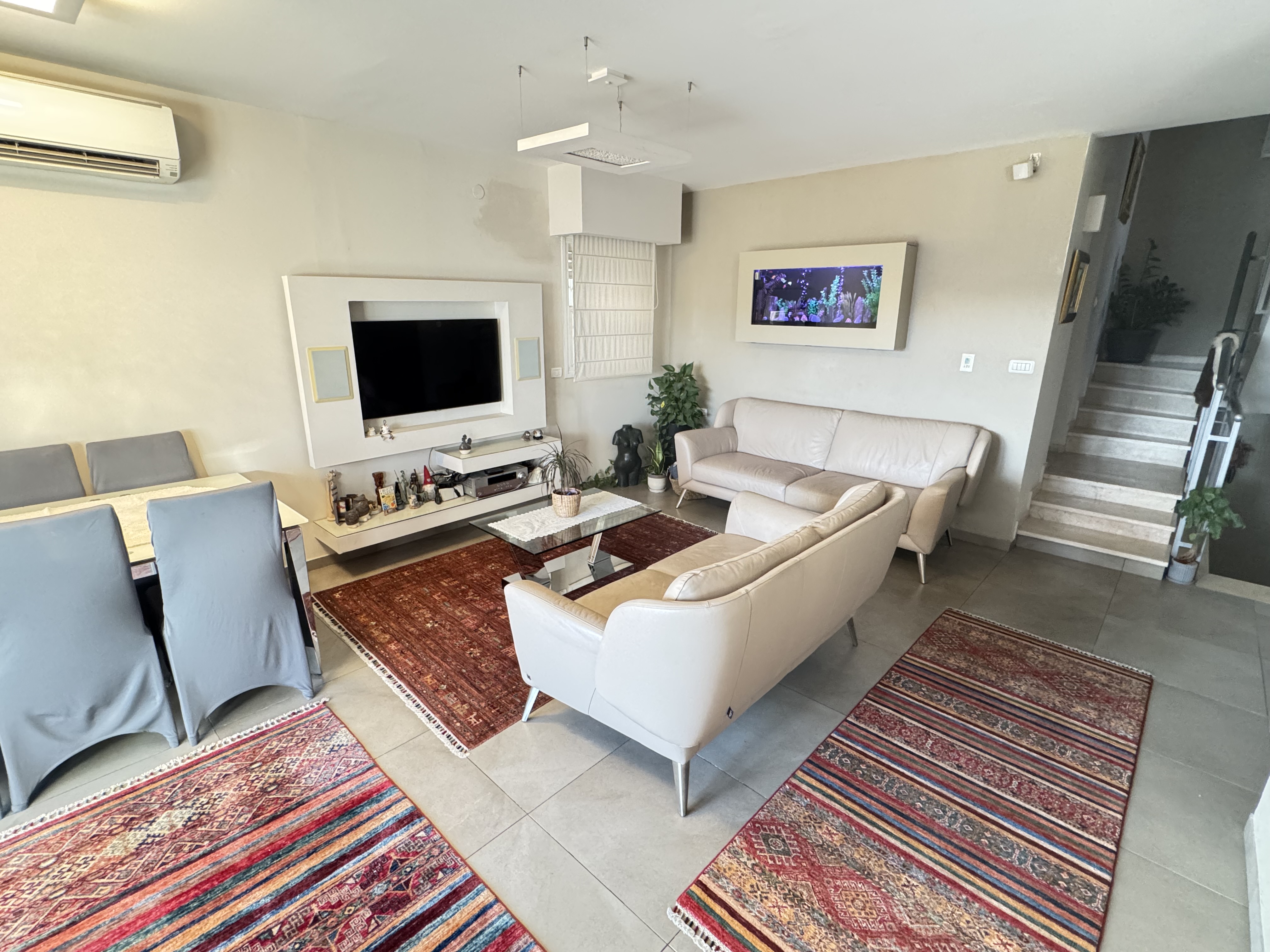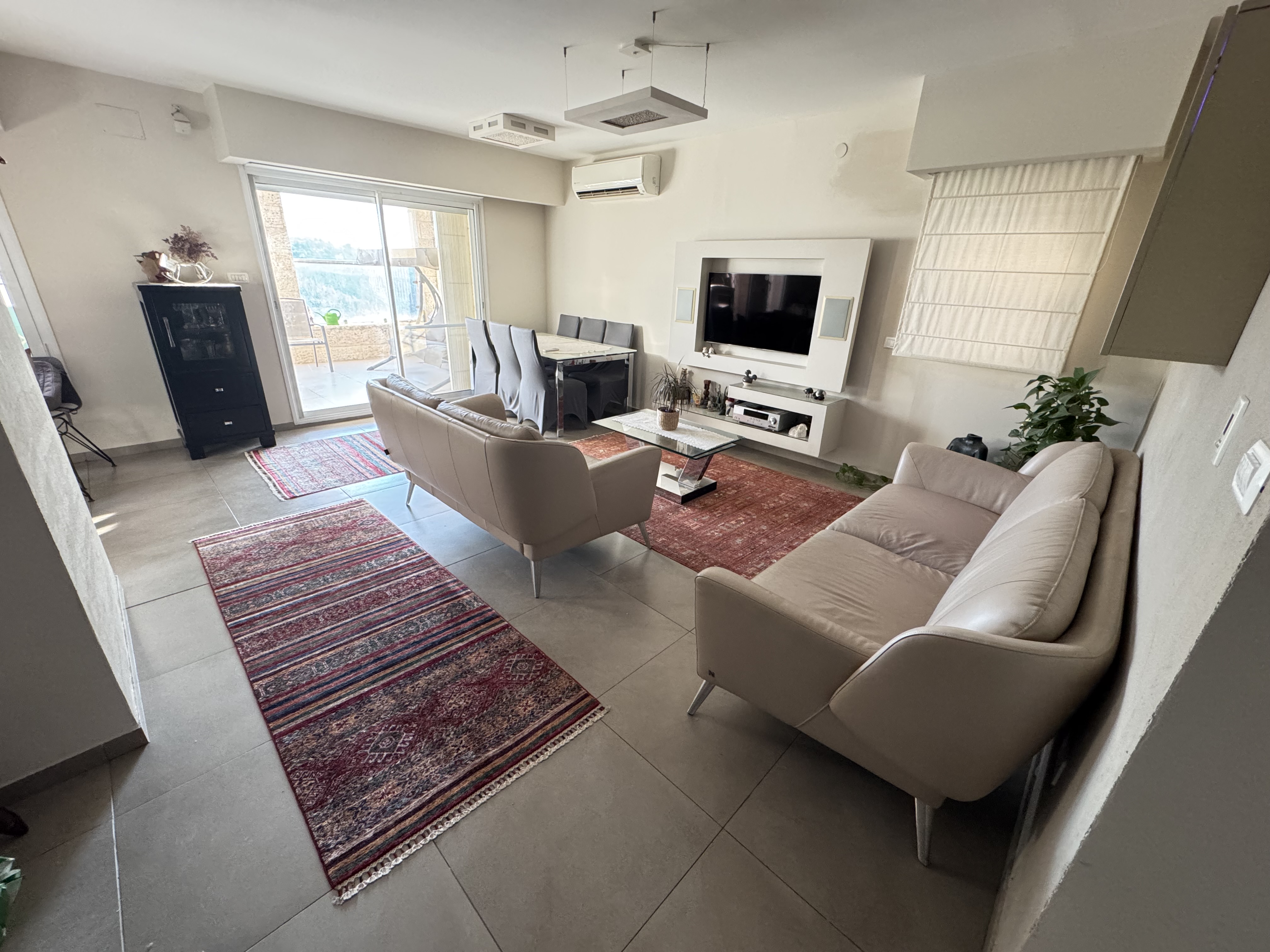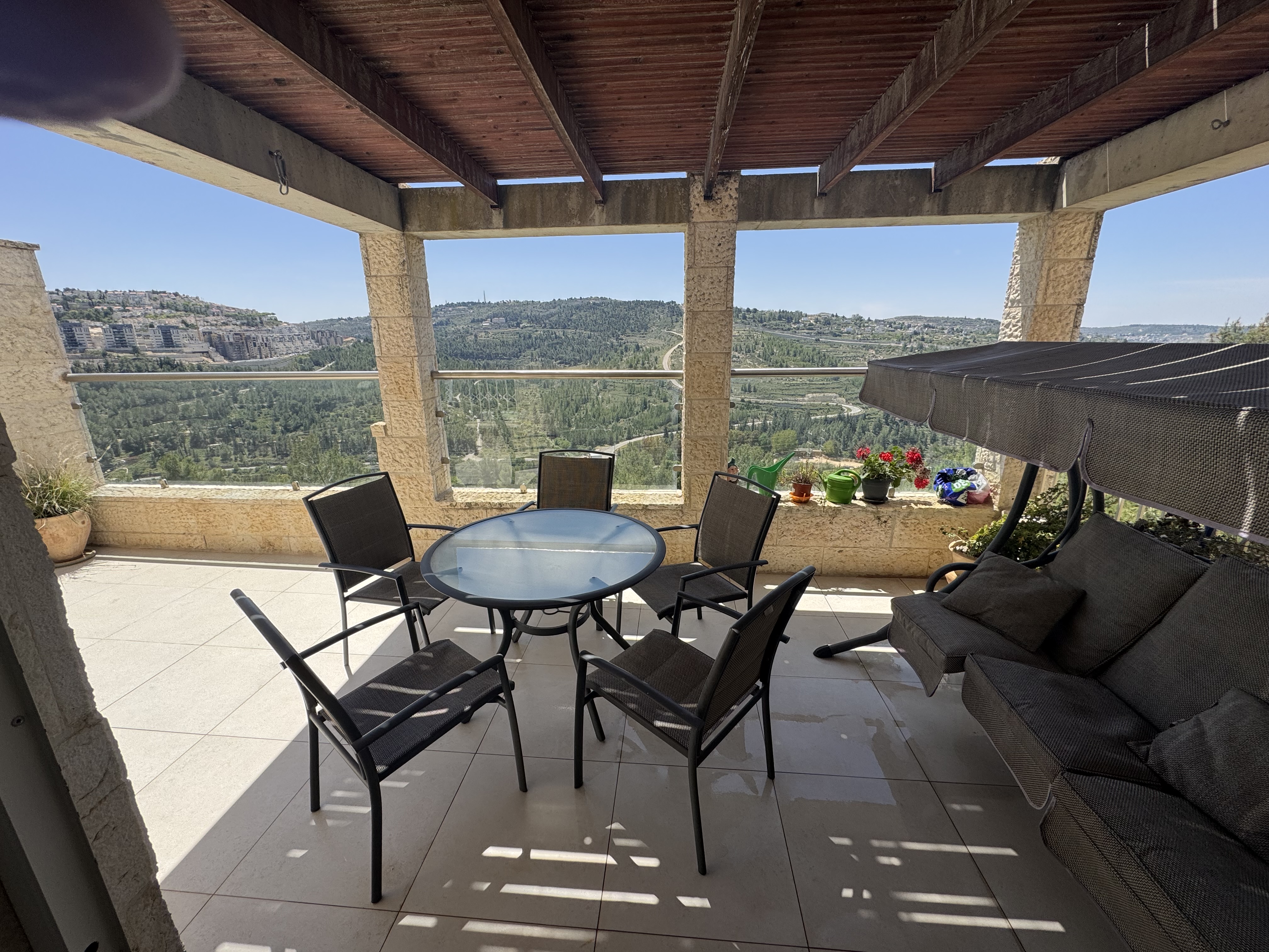 Jerusalem, In Givat Massua, triplex facing a stunning view, 6 rooms, air conditioning in each room, full of light, 2 large balconies. Spacious basement, private covered parking for two vehicles + electric vehicle charger, closed with roller shutters, elevator. 4 bathrooms, plaster niches (the apartment after professional design). Highly recommended to come and be impressed!!!