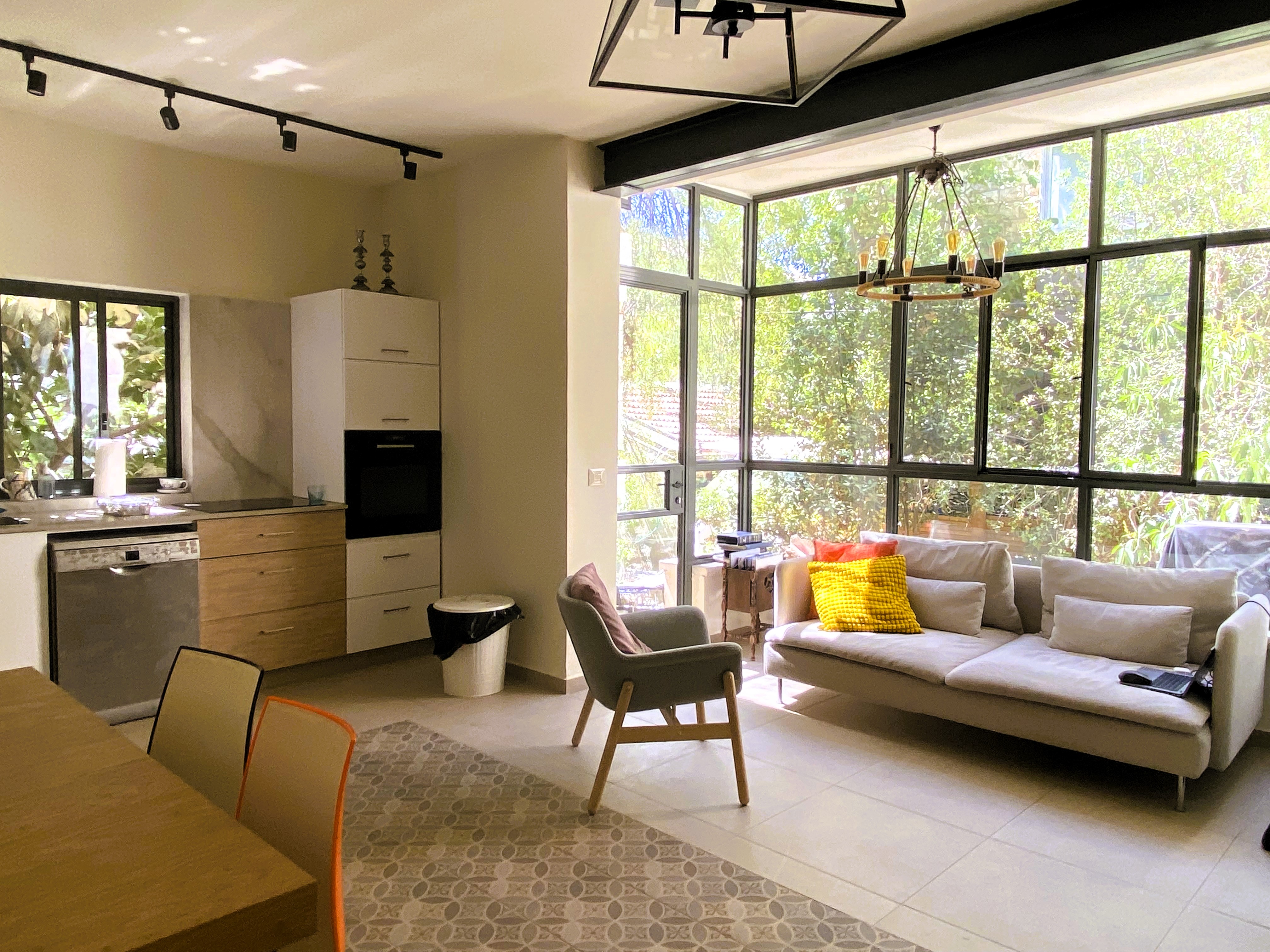 Located in the sought after Old Katamon neighborhood , close to the stiblach this charming 3 room apartment is tastefully renovated and full of light ! Featuring: living room with exit to a lovely garden, a master bedroom with en suite and walk in closet, a safe room and a second bathroom. Central AC. In addition there is a large storeroom with a window that has been converted into a separate studio apartment with bathroom .